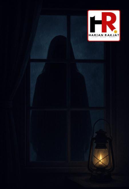 Ratri lungguh ing kamaré, sinau nganggo cahya lampu petromaks. Bayanganane mumbul ing tembok, kaya ana wong liya sing nguntit. Nalika jam wis nuduhake tengah wengi, dumadakan ana swara ketukan alon saka jendhela.