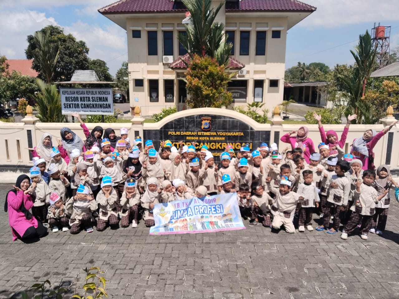 Foto: Polsek Cangkringan menerima kunjungan dari Kelompok Bermain (KB) dan TKIT Al-Qodir, dalam rangka program Polisi sahabat anak, Kamis (02/10/2025).