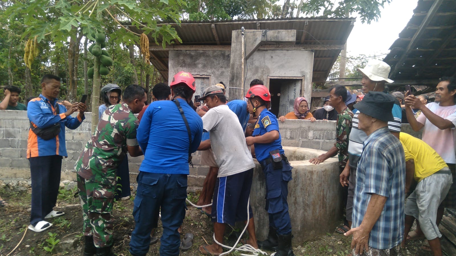 Foto: Evakuasi korban yang terjebur sumur oleh Damkar dan BPBD Gunungkidul.