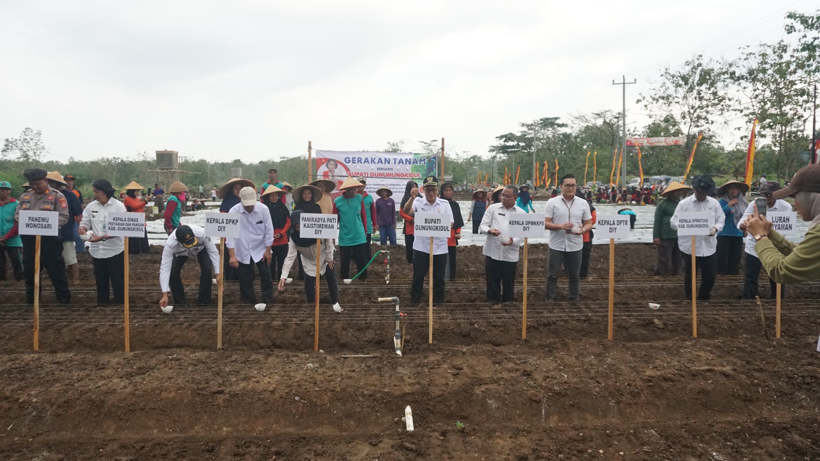 Harian Rakjat, Gunungkidul– Wakil Bupati Gunungkidul, Joko Parwoto, S.E., M.M., secara resmi mencanangkan Gerakan Tanam Hortikultura Lumbung Pangan Mataraman di Kalurahan Piyaman pada Rabu (13/8/2025). Kegiatan ini dipusatkan di lahan pertanian kas desa dengan dukungan dana BKK Danais DIY.
