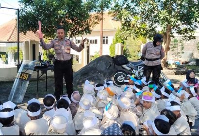 Foto: Polsek Cangkringan menerima kunjungan dari Kelompok Bermain (KB) dan TKIT Al-Qodir, dalam rangka program Polisi sahabat anak, Kamis...
