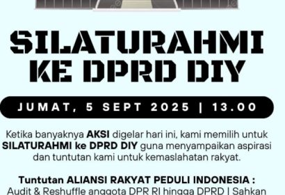 Foto: Massa Aksi dari Aliansi Rakyat Peduli Indonesia (ARPI) gelar silaturahmi dengan DPRD DIY, Jumat (05/09/2025). (AR). Yogyakarta, Harian Rakjat...
