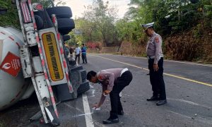 Hilang Kendali, Truck Tangki GAS Terguling Satu Korban Meninggal Dunia