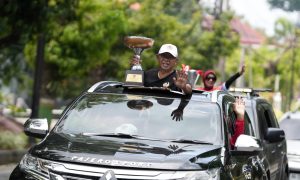 Berhasil Kawinkan Juara Umum PORDA dan PEPARDA DIY 2025, Atlet dan Ofisial Sleman Arak Piala Keliling Bumi Sembada