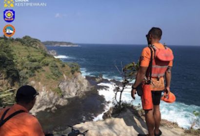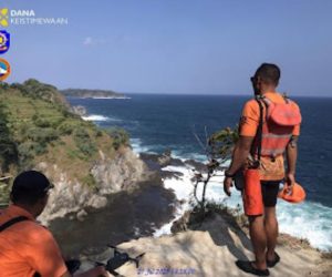 Foto:Tim SAR melakukan pencarian pengunjung yang hilang di kawasan pantai Siung, Gunungkidul pada Minggu (27/07), (BW) Harian Rakjat, Gunungkidul —...